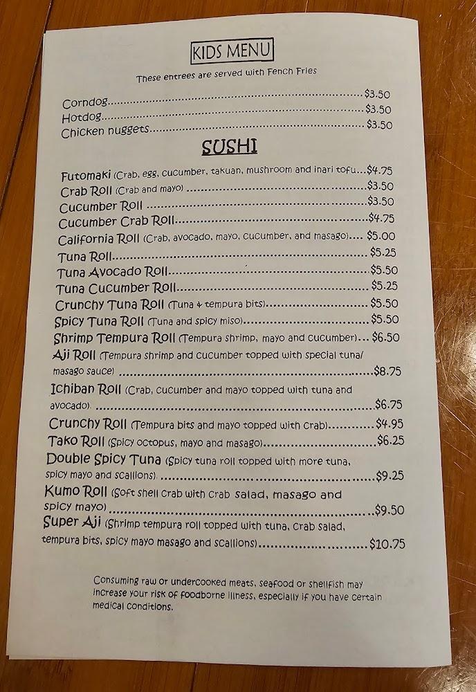 Discover Aji Ichiban, your go-to sushi and Asian cuisine haven in Jacksonville, NC. Located at 343 Western Blvd I, we offer a delightful range of traditional Japanese dishes in a relaxed, trendy atmosphere, perfect for lunch, dinner, or a solo meal. Enjoy our convenient services, including delivery, takeout, and dine-in options, while savoring an extensive selection of teas. Our accessible facilities cater to everyone, ensuring a comfortable dining experience. With vegetarian-friendly choices and small plates to share, Aji Ichiban is ideal for families and groups alike. Join us for a memorable culinary adventure that caters to all palates!